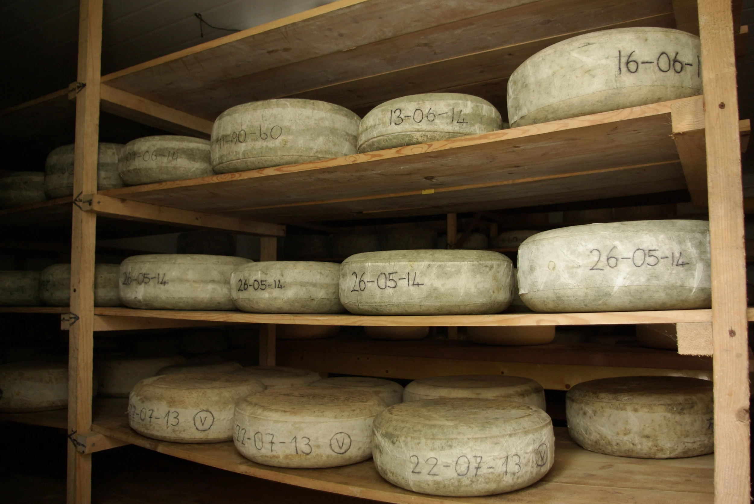 All cheeses start off with a very mild flavour. They might be acidic or milky-sweet depending on how they're made, but stronger and more complex flavours take time to develop. Ripening bacteria, yeasts and moulds create aromatic compounds producing a range of flavours and aromas in the body and on the surface of the cheese. Raw milk naturally contains a diversity of ripening bacteria which contributes to the complexity of flavours and are unique to the herd and their pasture.
